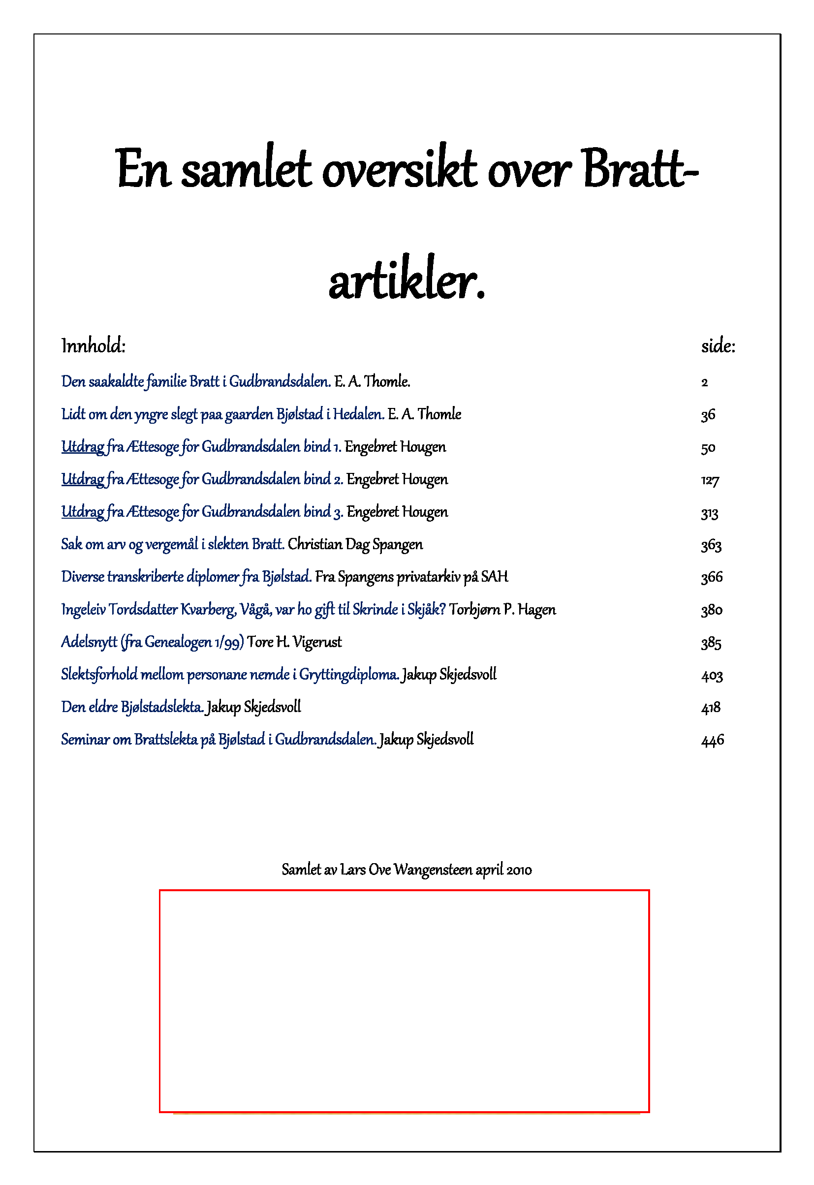 12 artikler skrevet av 6 forfattere om Bratt-ætten i Gudbrandsdalen
