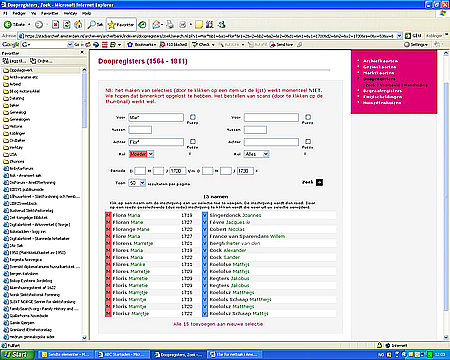 Da jeg allerede har funnet at Frode han har en datter ved navn Maren, som i hollandske kilder fremstår som Marrijtje, vil jeg måtte søke trunkert med «Mar*» og «Flor*» som søkebegrep. Da henholdsvis som fornavn (Voor) og etternavn (Acther). Noen ganger må man prøve seg frem med mellomnavn (tussen).