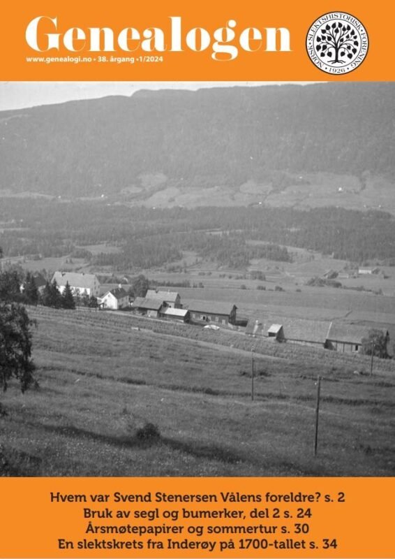 I disse dager er et nytt nummer av Genealogen på vei til våre medlemmer. Nummeret har tre større artikler, den første handler om Stenersen-slekten på Vålen i Gausdal, der vi får presentert nye funn som endrer tidligere forskning. Neste artikkel handler om bumerker og er en fortsettelse med noen rettelser av forrige artikkel om segl og bumerker i Råde. Siste artikkel handler om en søskenflokk på Inderøy og deres inngiftede slektskrets, som omfattet bla. slektene Heintz, Hiermind og Wendelbo. Redaksjonen skriver også litt om den kommende sommerturen i juni og presenterer både årsmøteinnkalling, regnskap og årsberetning.
