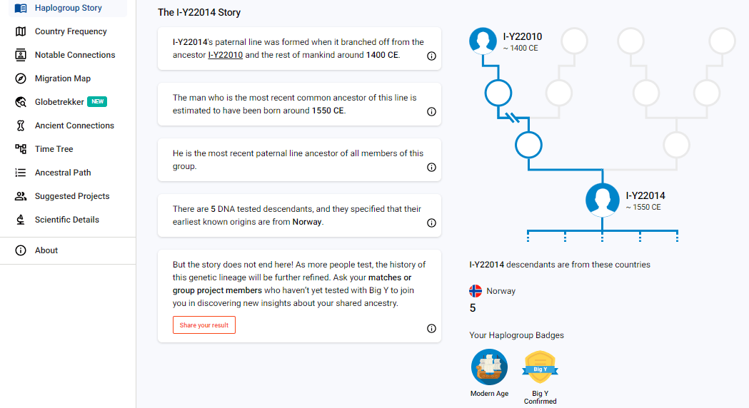 Familytreedna har vært en pioner fra første stund og var det første selskapet som begynte å tilby kommersielle tester. Siden starten har behovene utviklet seg og med det også mer kunnskap om vår fortid. De siste årene har Familytreedna jobbet med flere prosjekter og et av disse er Discover-prosjektet, som først og fremst visualierer mer de resultatene vi får. Nå i starten har fokuset vært å forbedre utbyttet av å ta en Big-Y test, men etterhvert kommer det også mer verktøy for mtDNA.