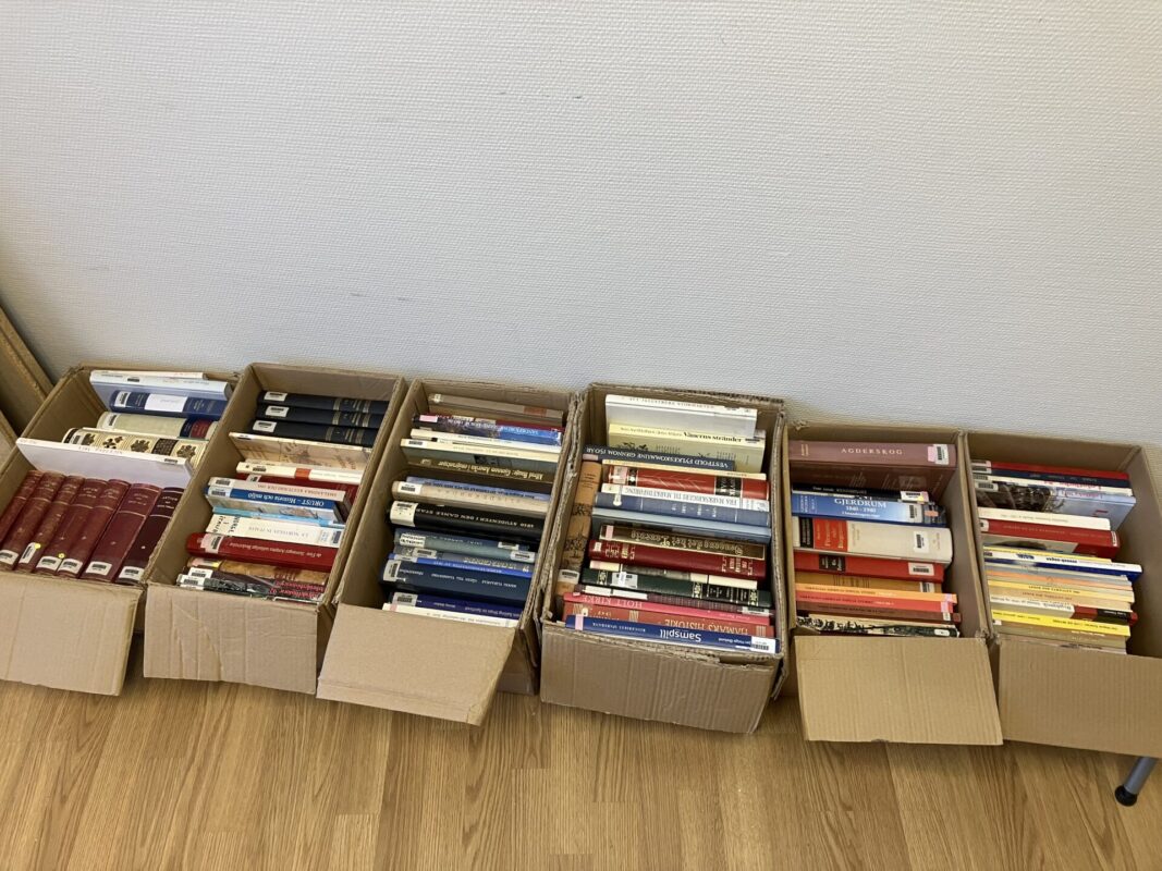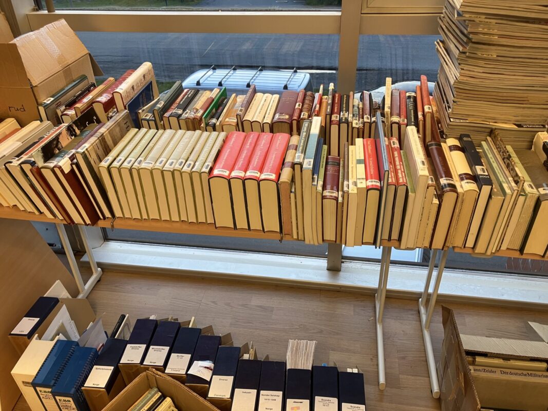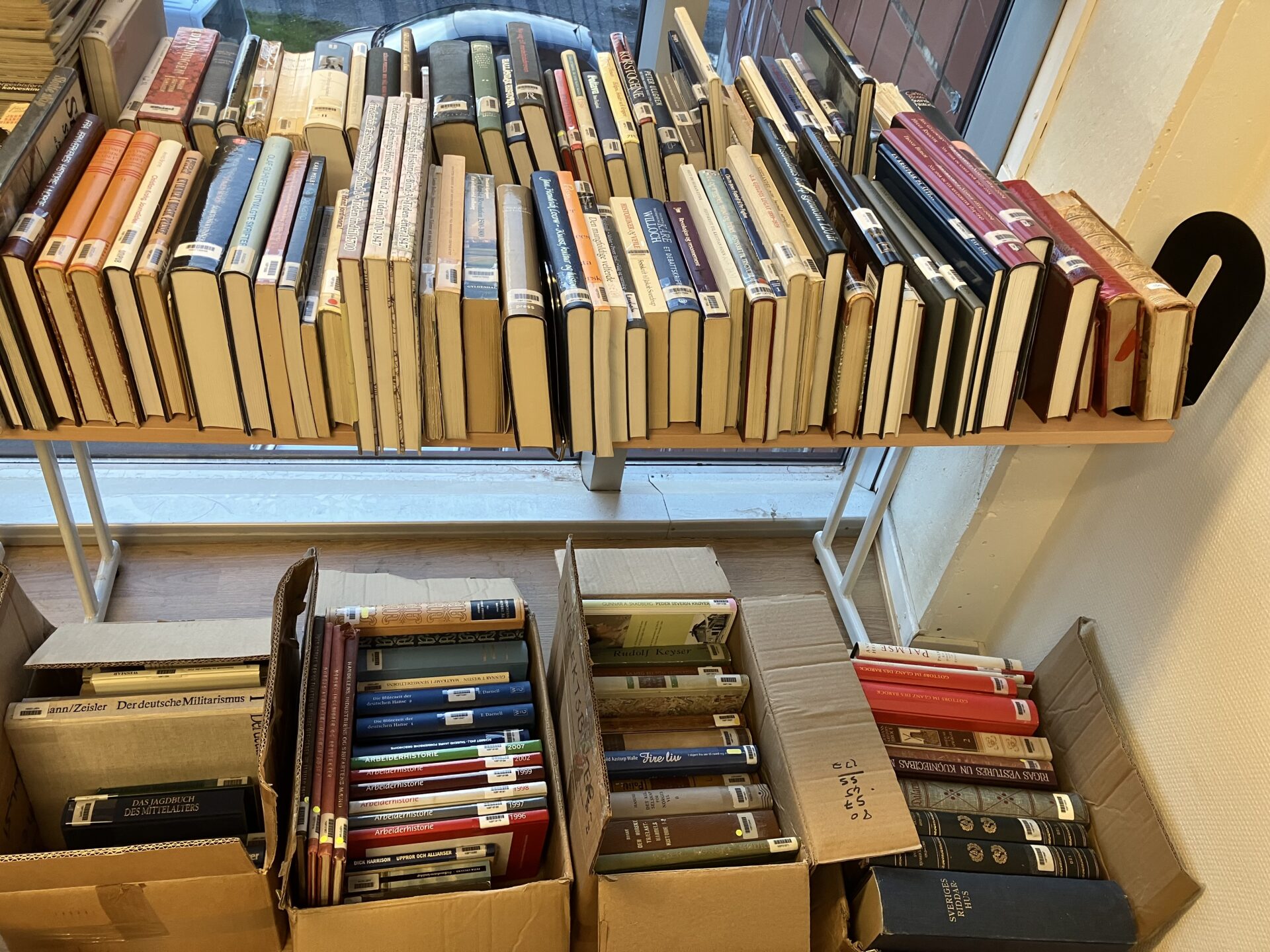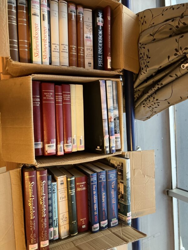 Det meste som er igjen nå, er lokalhistoriske bøker, by- og bygdehistorie, lov og justis, biografier og noe historiske verk samt noen årbøker. Siden vi nå nærmer oss tømmedagen for lokalene så er det tenkt åpne dører og selvplukk av det som vi har igjen (altså GRATIS). Så ta gjerne med poser, kasser o.a. ved behov.